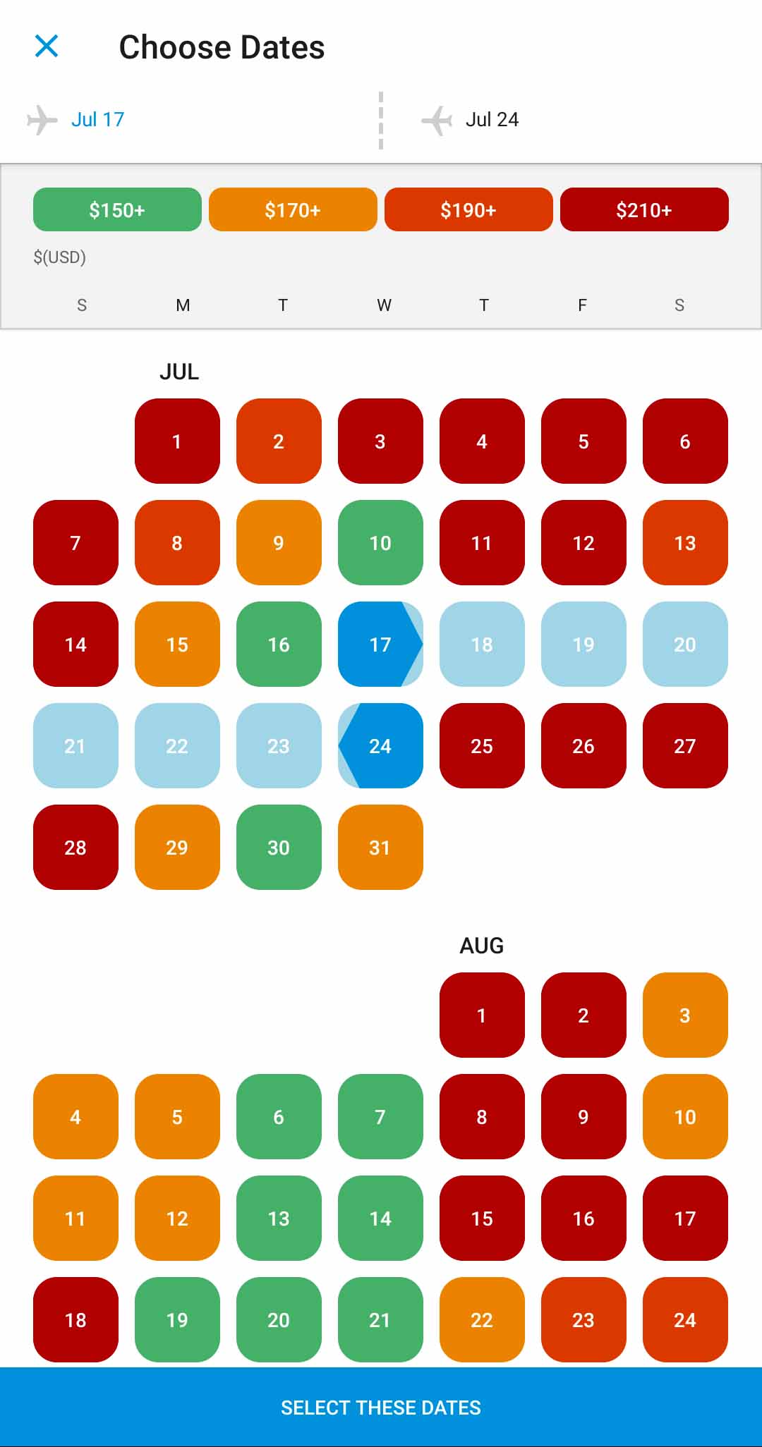 I use to book on this site/app so often. It was, for a time, the cheapest flight booking site. It is now something more like Orbitz, Expedia, Travelocity, Hotwire, or Priceline. I don’t book on any of those sites. They end up being more expensive. Every now and then I look on these sites just to make sure the apps and sites I’m using are still the cheapest. The one thing I can say for this site/app is that it’ll show you the price of a flight on each day without selecting anything yet.