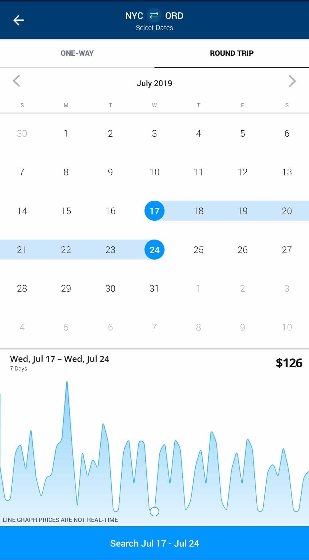 A lot of folks say that it is illegal to do this type of booking. Skiplagged went through a whole lawsuit about it, and they ruled in Skiplagged’s favor. Also, not all the flights that appear on their site and app are those types of flights. Some are straight forward. Just a regular flight. I really like the price line graph they have at the bottom of the app. But some passengers have been sued for doing the hidden city trick. This SmartTravel article discusses the risks.